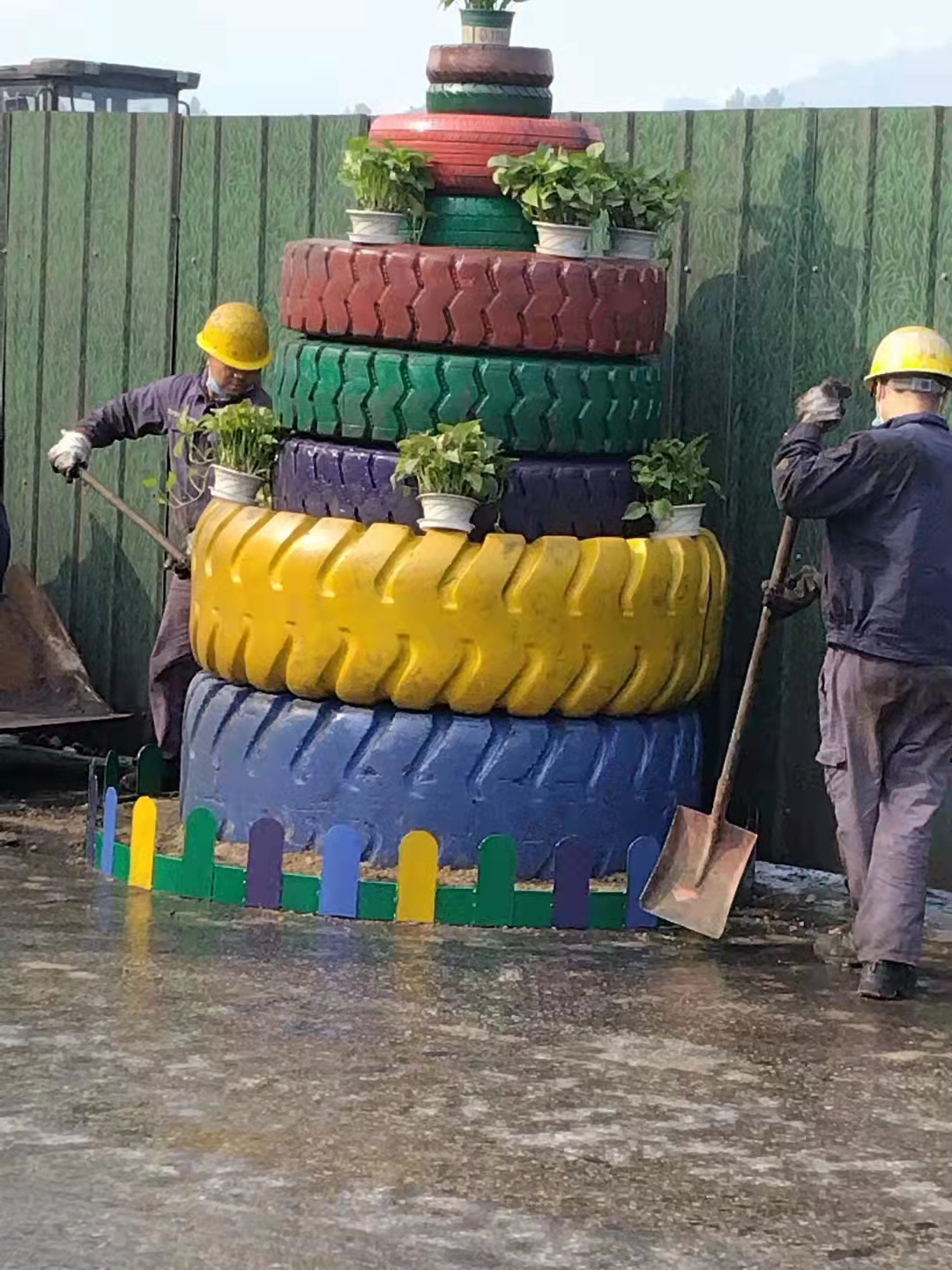 员工们利用车队车辆替换下来的60个废旧轮胎制作多彩花坛,采购油漆翻新物流车队办公区外墙,还种植了许多如绿萝、铁树、棕叶树、红叶树等绿植,随处可见菊花、杜鹃、茶花等五颜六色的花卉。如今的车队已经大变样,谁见了不夸句好。