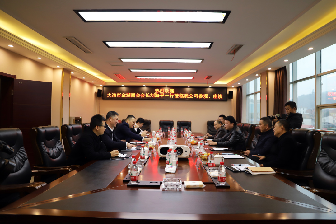 12月15日上午,大冶市金湖商会会长刘海平一行赴我公司进行座谈、参观。公司常务副总经理林明光、行政副总经理陈敦杨陪同。